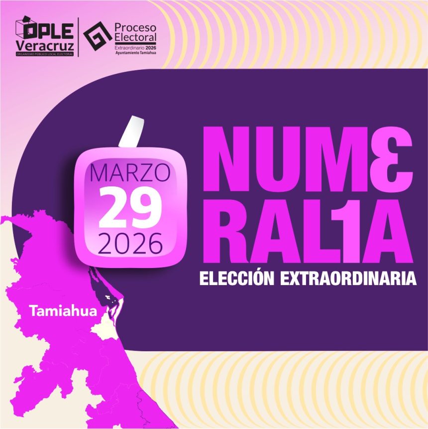 Xalapa, Ver., 27 de marzo de 2026.— El Organismo Público Local Electoral (OPLE) de Veracruz aseguró que existen condiciones de seguridad para la elección extraordinaria en Tamiahua y llamó a la ciudadanía a participar en la jornada del próximo domingo 29 de marzo. La consejera presidenta del organismo, Marisol Alicia Delgadillo Morales, afirmó que el proceso se desarrollará en un ambiente pacífico, tras la anulación de los comicios ordinarios de 2025.